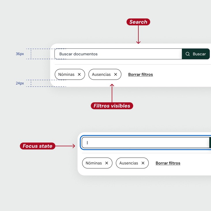 Filtros más visibles y accesibles, con estados claros y feedback visual inmediato.